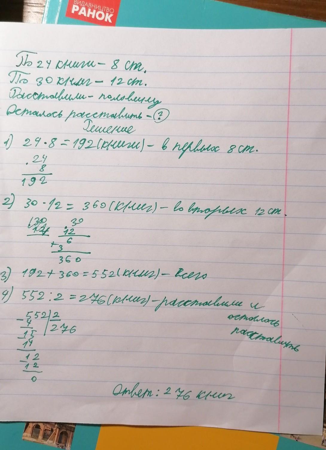 2) 552 : 2 = 276 (кн) и расставили и осталось расставить