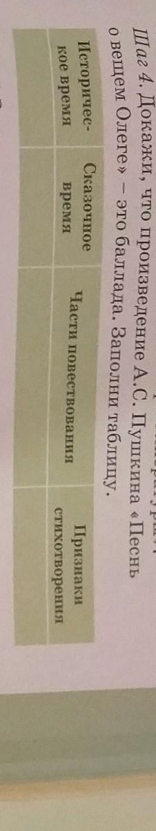 о вещем Олеге» - это баллада. Заполни таблицу.