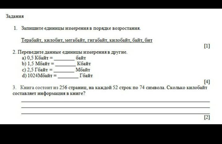 1. бит байт килобайт мегабайт гигабайт терабайт