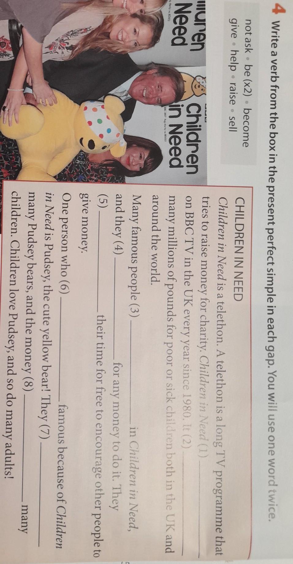 Write a verb from the box in the present perfect simple in each gap. You will use one word twice.
