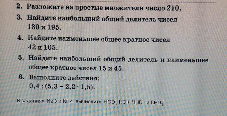 срочно!!даю 50 баллов.Выполнить номер 2 3 4 5 6 в номере 3 и 4 вычислить нод нок чнд снд