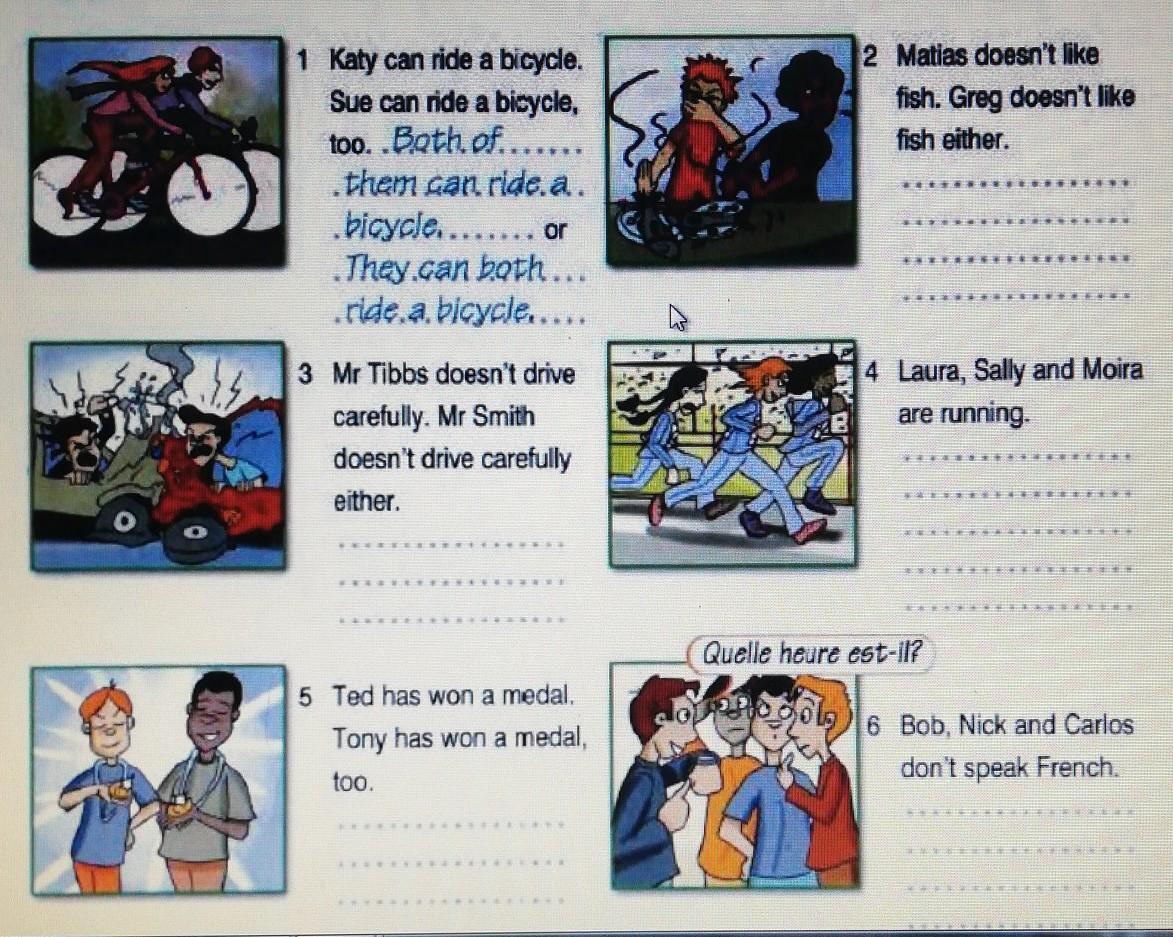 1. Katy can ride a bicycle. sue can ride a bicycle, too. Both of them can ride a bicycle or they can both ride a bicycle.