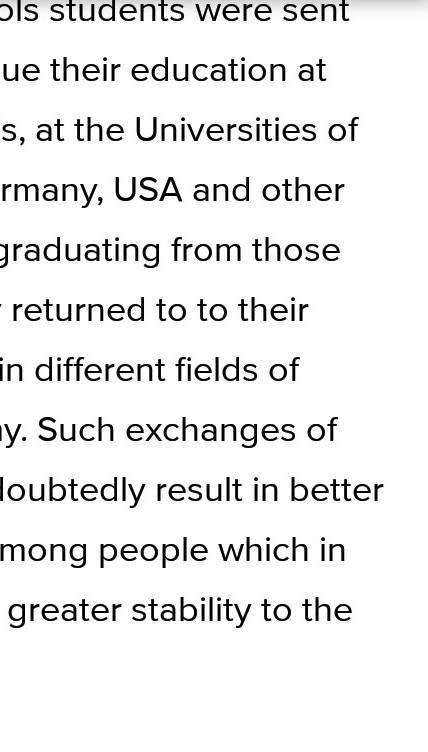 Such exchanges of students will undoubtedly result in better understanding among people which in its turn will bring greater stability to the whole world."