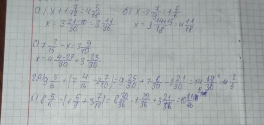 2. а) 9 5/6 +7 4/15-2 7/10= 9 25/30+7 8/30- 2 21/30=14 11/30
