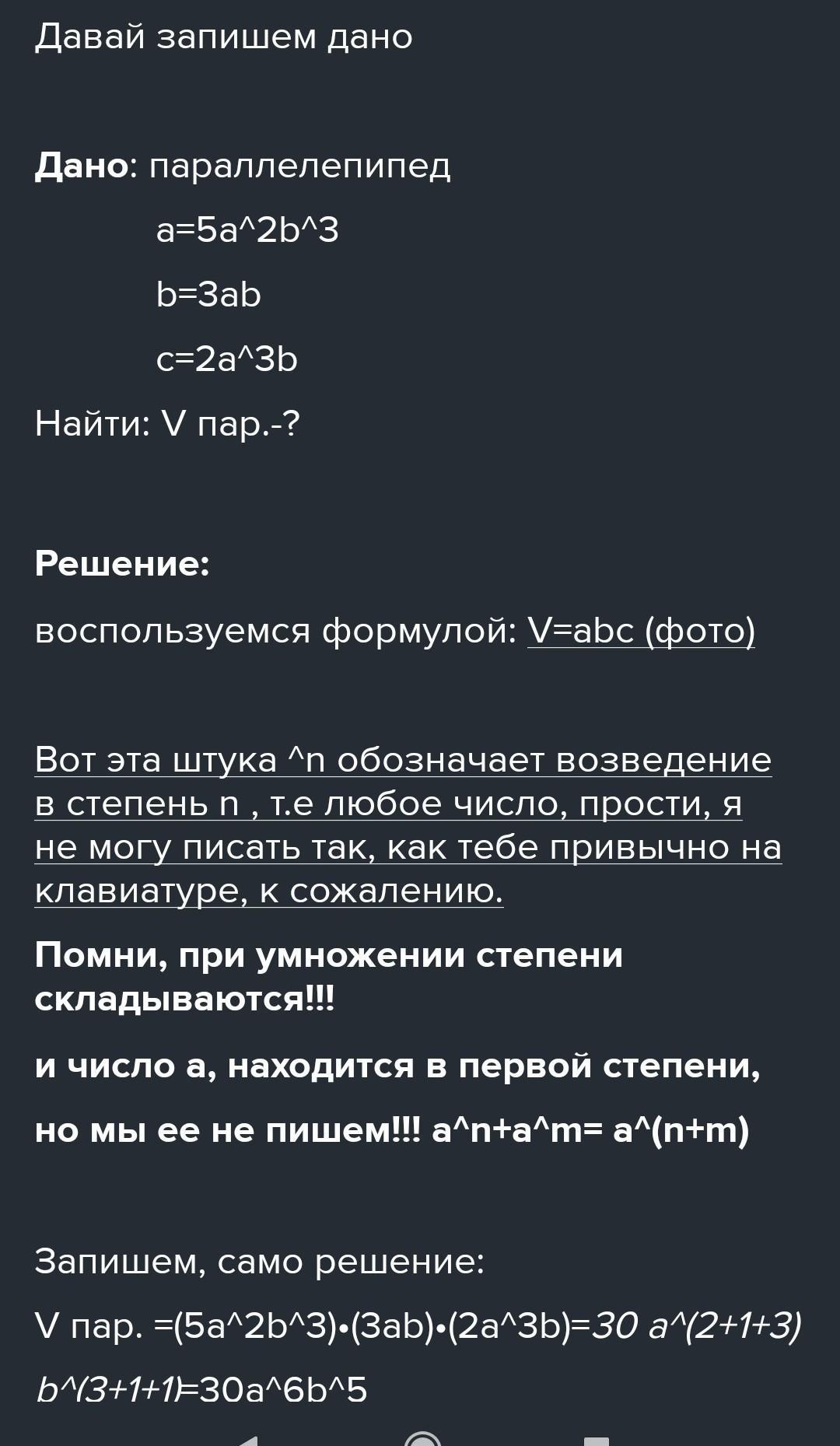 Составьте выражение для нахождения объёма параллелепипеда ответ Запишите в стандартном виде