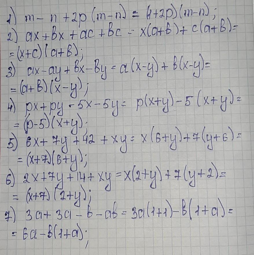 1) Разложение многочленов на множители способом группировки.