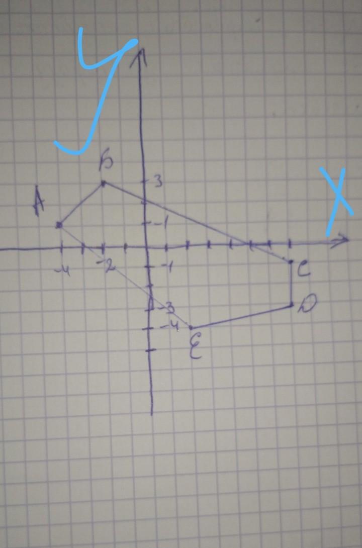 начертите пятиугольник вершины которого расположены в точках А(-4;1),Б(-2;3) С(7;-1) Д (7;-3) Е (2;-4)