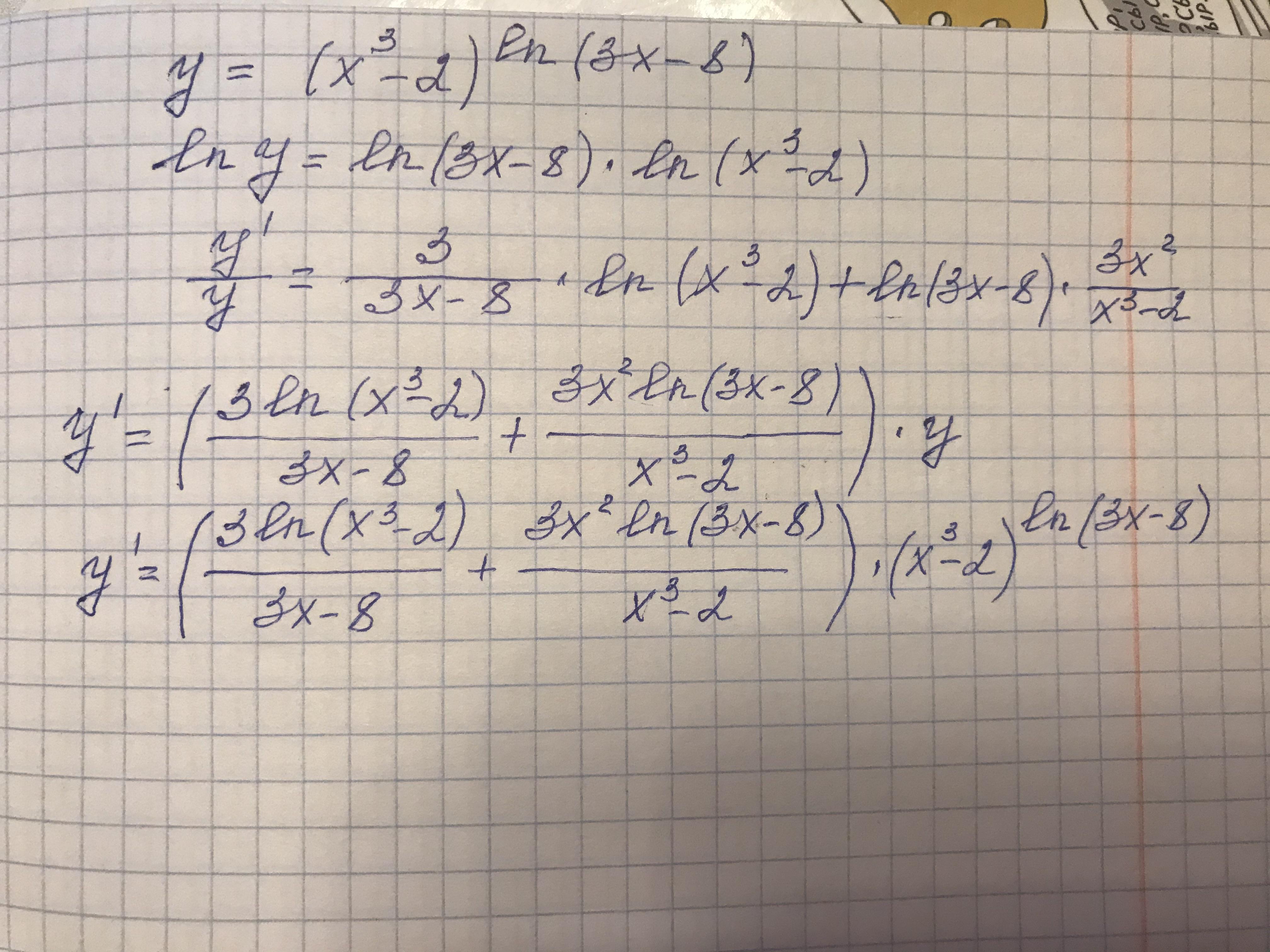 Найти производную сложнопоказательной функции методом логарифмического дифференцирования