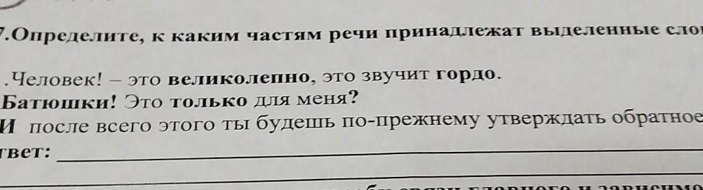 7.Определите, к каким частям речи принадлежат выделенные слова: