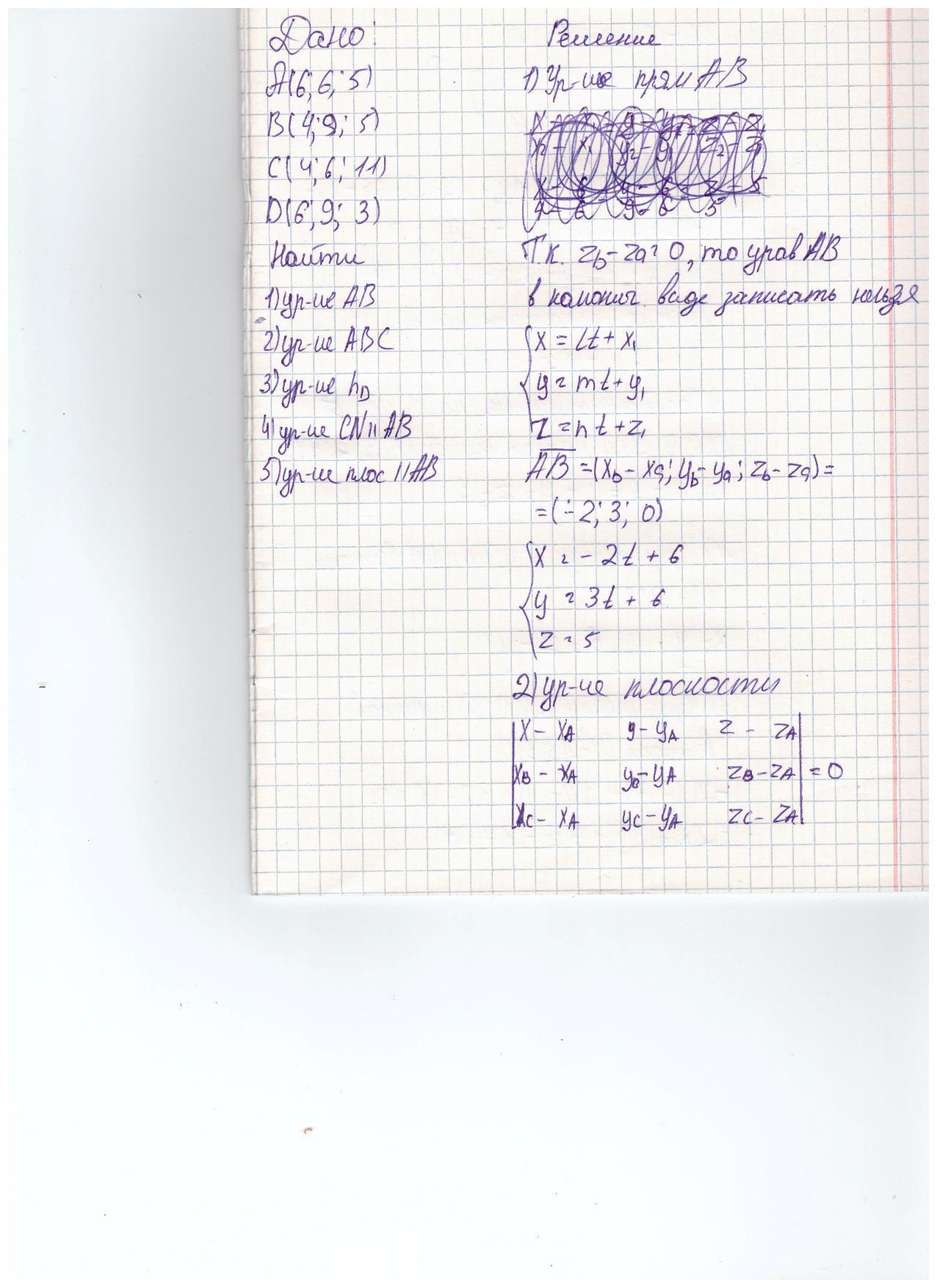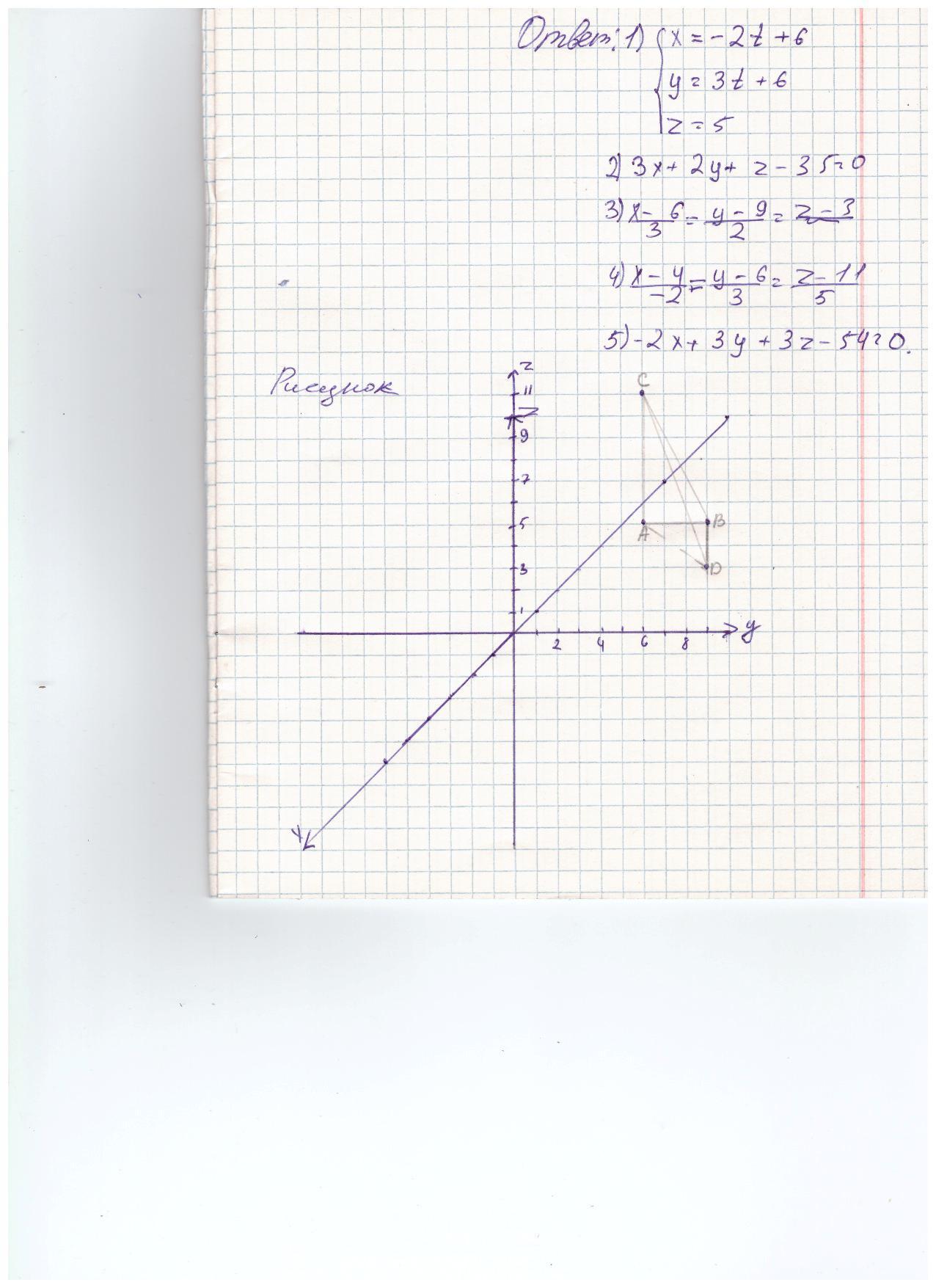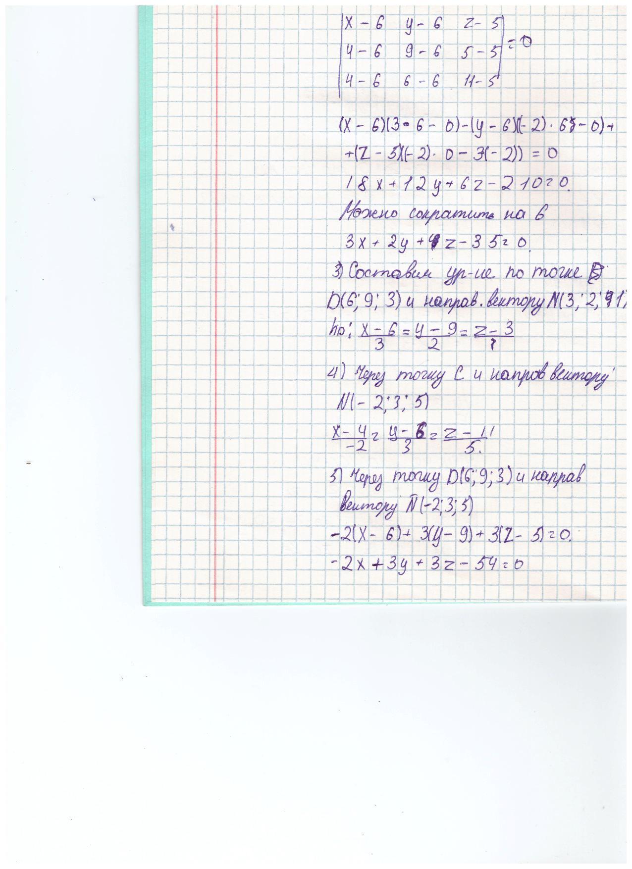 5) Найдите уравнение плоскости, проходящей через точку D, перпендикулярно