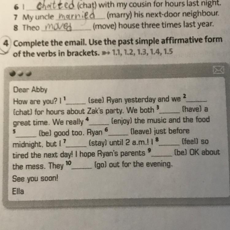 How are you? I saw Ryan yesterday and we chatted for hours about Zak's party.We both had a great time.We really enjoyed the music and the food was good too.Ryan left just before midnight, but I stayed until 2 a.m.! I felt so tired the next day! I hope Ryan's parents were Ok about the mess.They went out for the evening.