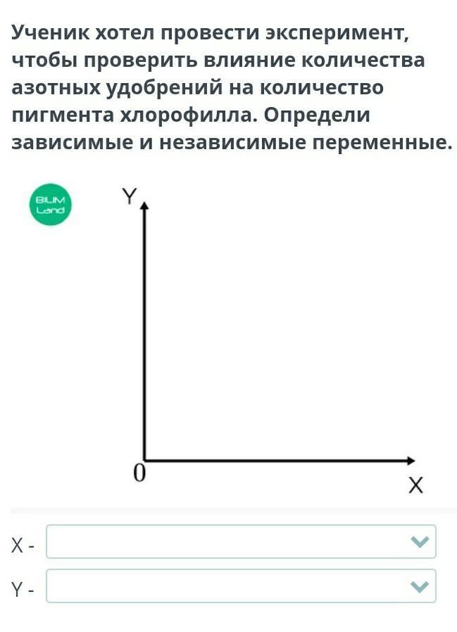даю 100 баллов Ученик хотел провести эксперимент, чтобы проверить влияние количества азотных удобрений на количество пигмента хлорофилла. Определи зависимые и независимые переменные.
