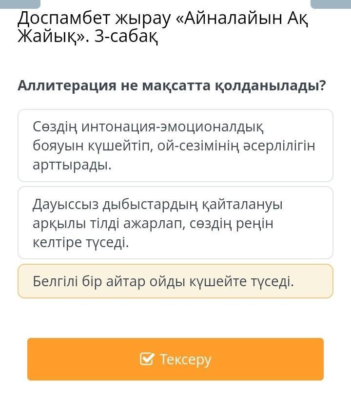 Аллитерация - өлеңде бірдей немесе біртекті дауыссыздардың қайталануы, оған ерекше дыбыстық мәнерлілік (верификацияда)