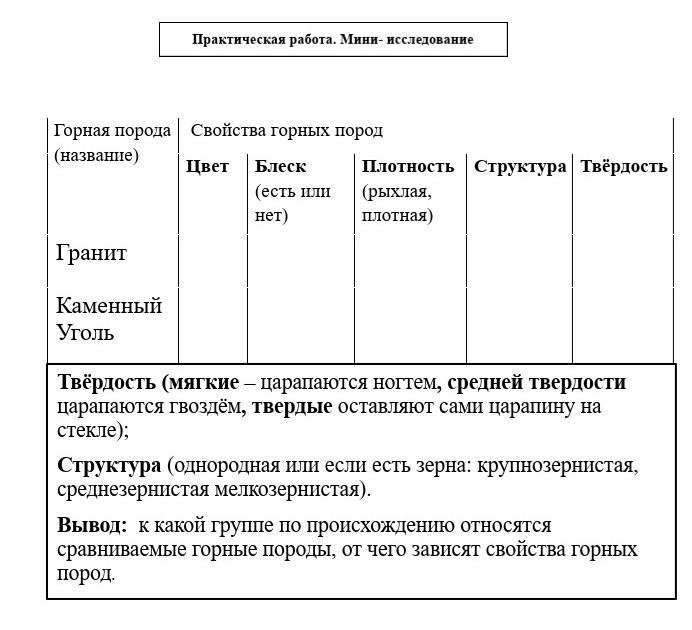 Вывод: относится магматическим- интрузивным горным породам. Ведущим признаком для определения типа горной породы является ее генезис, который определяется в полевых условиях по форме геологических тел и текстурно-структурным особенностям. Дальнейшее подразделение множества горных пород производится по различным, разработанным отдельно для каждого типа пород, сочетаниям структурно-вещественных признаков.
