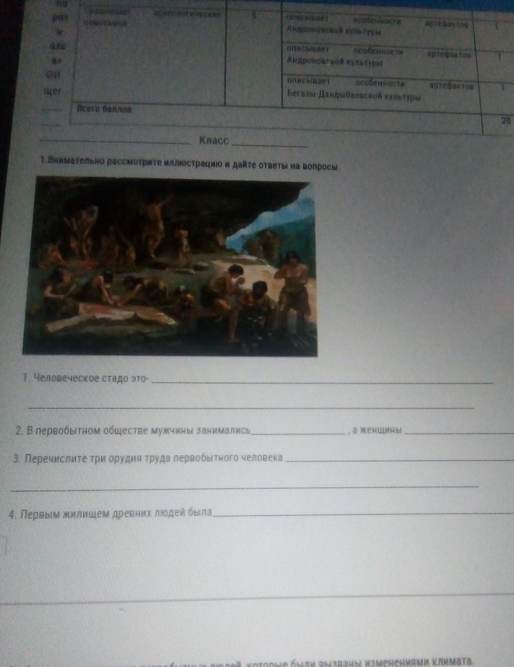 1 это Человеческое стадо -условное название первоначального человеческого коллектива который занимался собирательством. 2. мужчины охотильсь, ловили рыбу,добывали мясо, а женщины готовили еду из того что добывали их мужья. 3. каменный нож, каменный топор, копьё. 4. первые жилища были:пещеры,гроты,навесы из шкуры животных, плетёные конструкции, ямы и т.д.