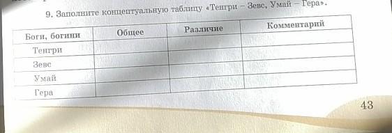9. Заполните концептуальную таблицу «Тенгри и Зевс, Умай и Гера».