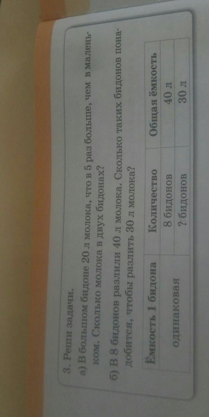 1) 40:8=5л (в каждом бидоне)