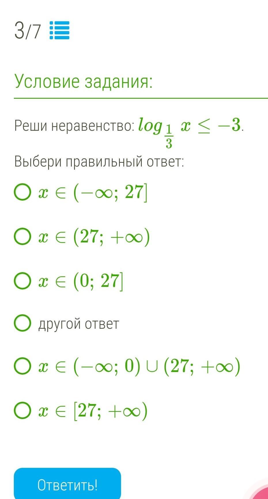 x≥(⅓)^-³ ; x≥3³ ; x≥27 .