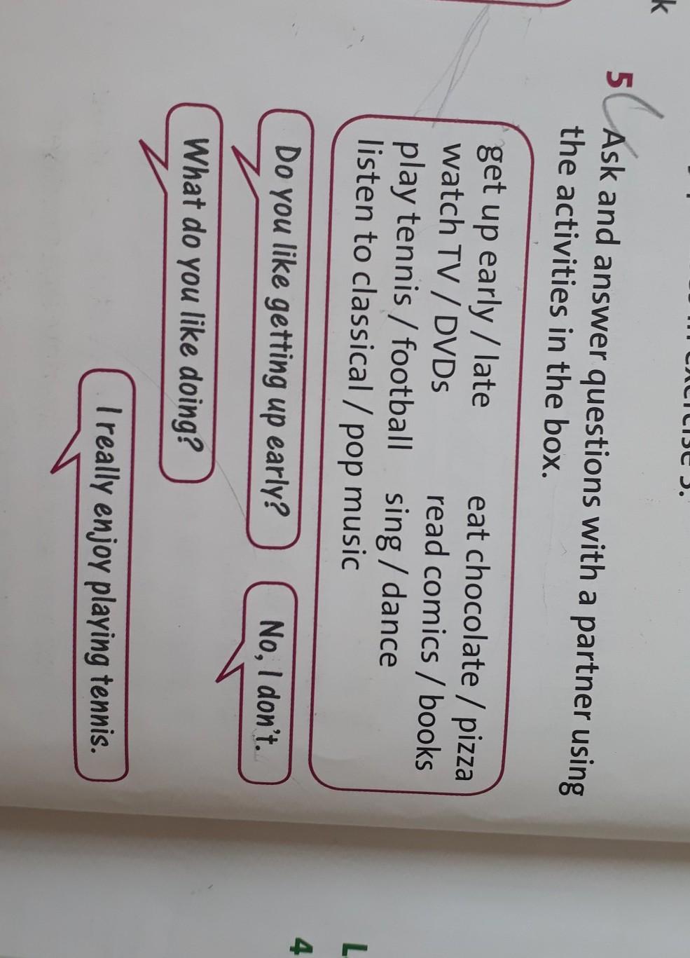 У тебя есть сосед по парте и ты у него(нее) спрашиваешь(ниже будет записаны английские слова и после перевод) после того как ты спросил(ла) у соседа(соседки) по парте например: do you like getting up early? На что сосед(ка) должна ответить Yes, I do/ no, I do not(don't)