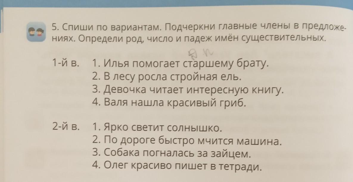 4. Олег(подлежащие) пишет(сказуемое) в тетради( ед. ч., ж. р., В. п.)