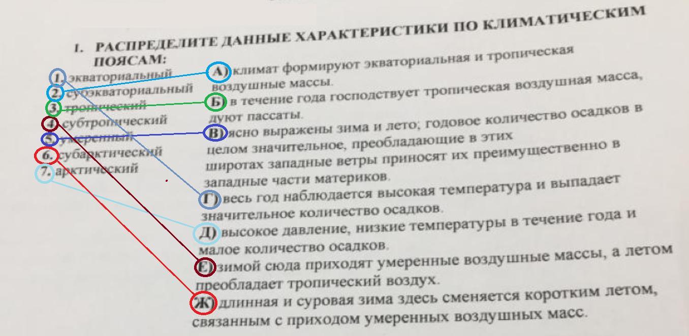 1. РАСПРЕДЕЛИТЕ ДАННЫЕ ХАРАКТЕРИСТИКИ ПО КЛИМАТИЧЕСКИМ