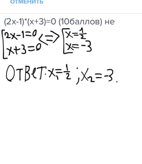 Там произведение множителей равно нулю, значит или первый множитель равен нулю или второй множитель равен нулю