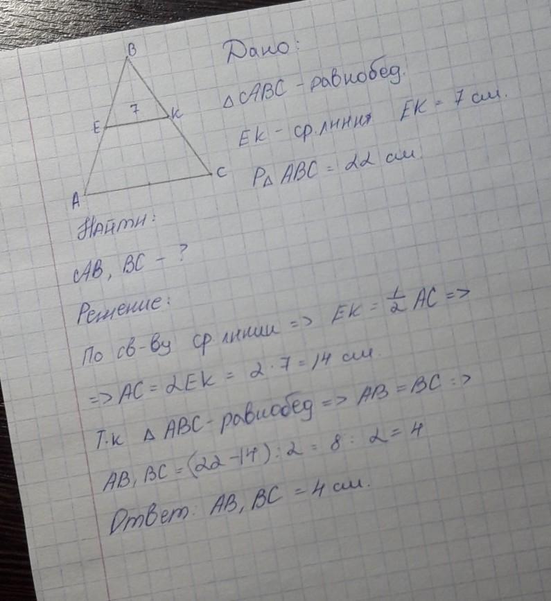 основанию, равна 7 см. Найдите стороны треугольника, если его
