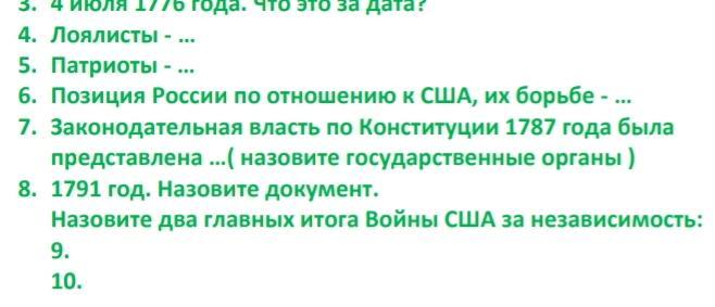 Назовите два главных итога Войны США за независимость.