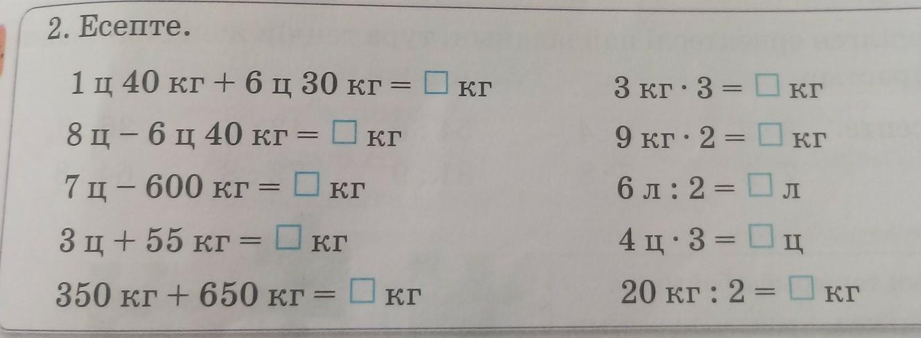 1) 1 ц 40 кг + 6 ц 30 кг = (100+40) кг + (6*100+30) кг = 140 кг + 630 кг = 770 кг