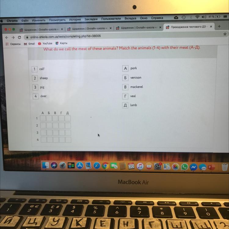 What do we call the meat of these animals? Match the animals (1-4) with their meat (A-D)