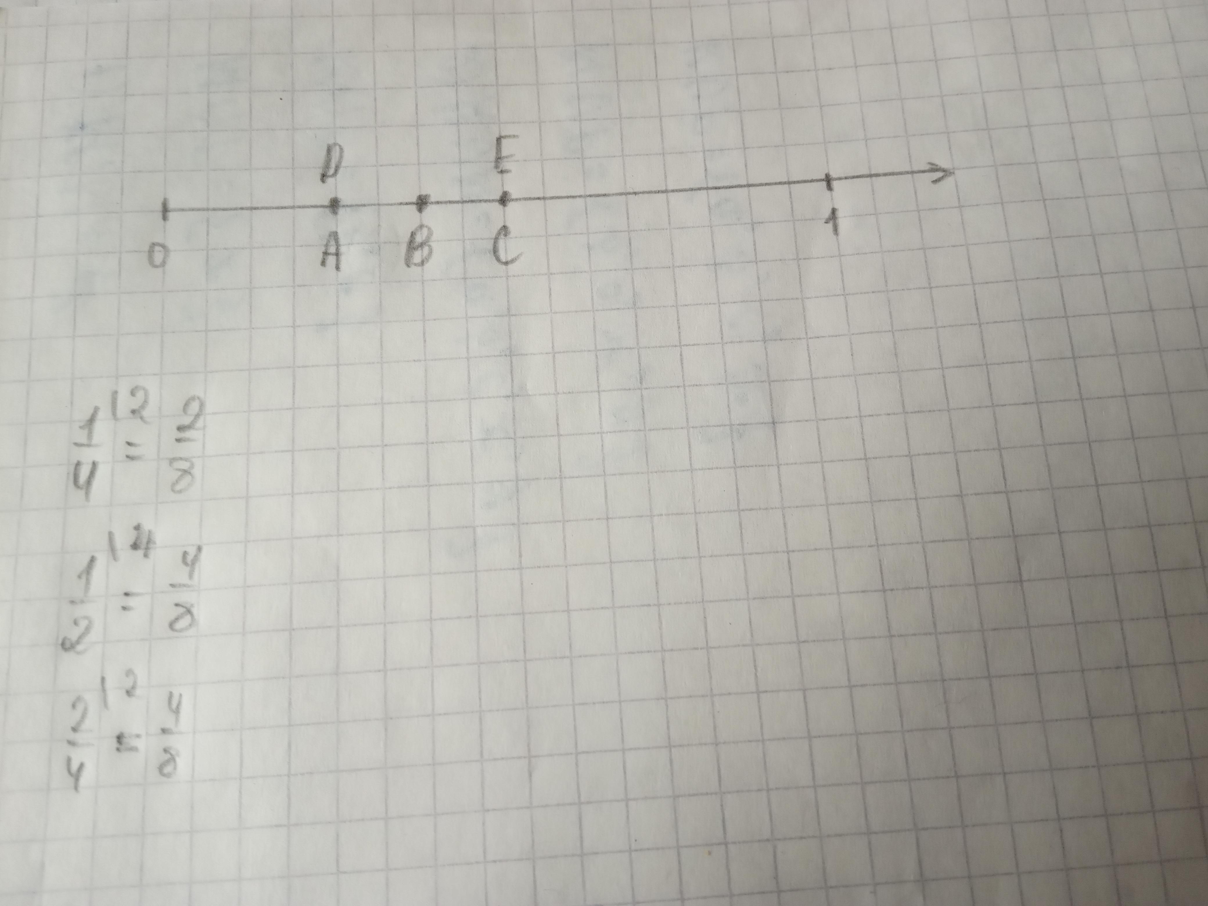 A (1/4) ,В (3/8),С(1/2),D(2/8),E(2/4)