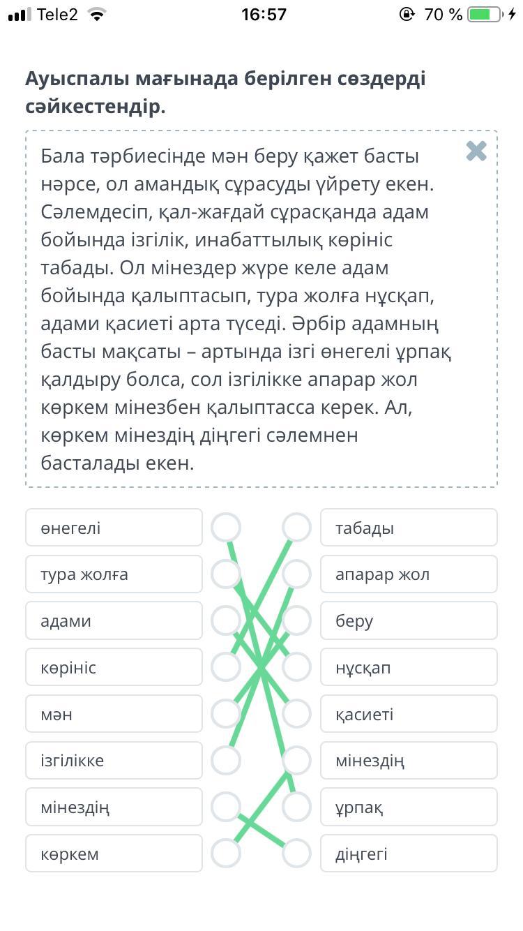 Ауыспалы мағынада берілген сөздерді сәйкестендір.