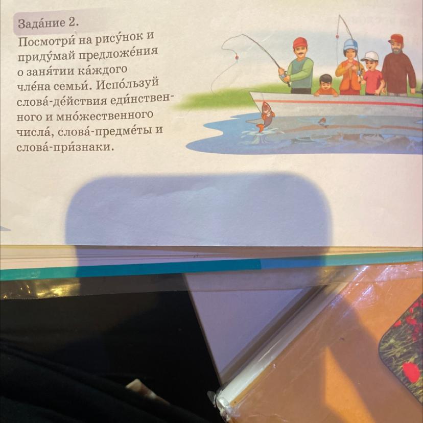 Семья пошла рыбачить.Отец поймал большую рыбу.Старший сын тоже решил по рыбачить.В это время лодка всё плыла дальше от берега Младший сын решил посмотреть на рыбок в озере.А дедушка семьи водит лодку, что бы она не уплыла в даль.