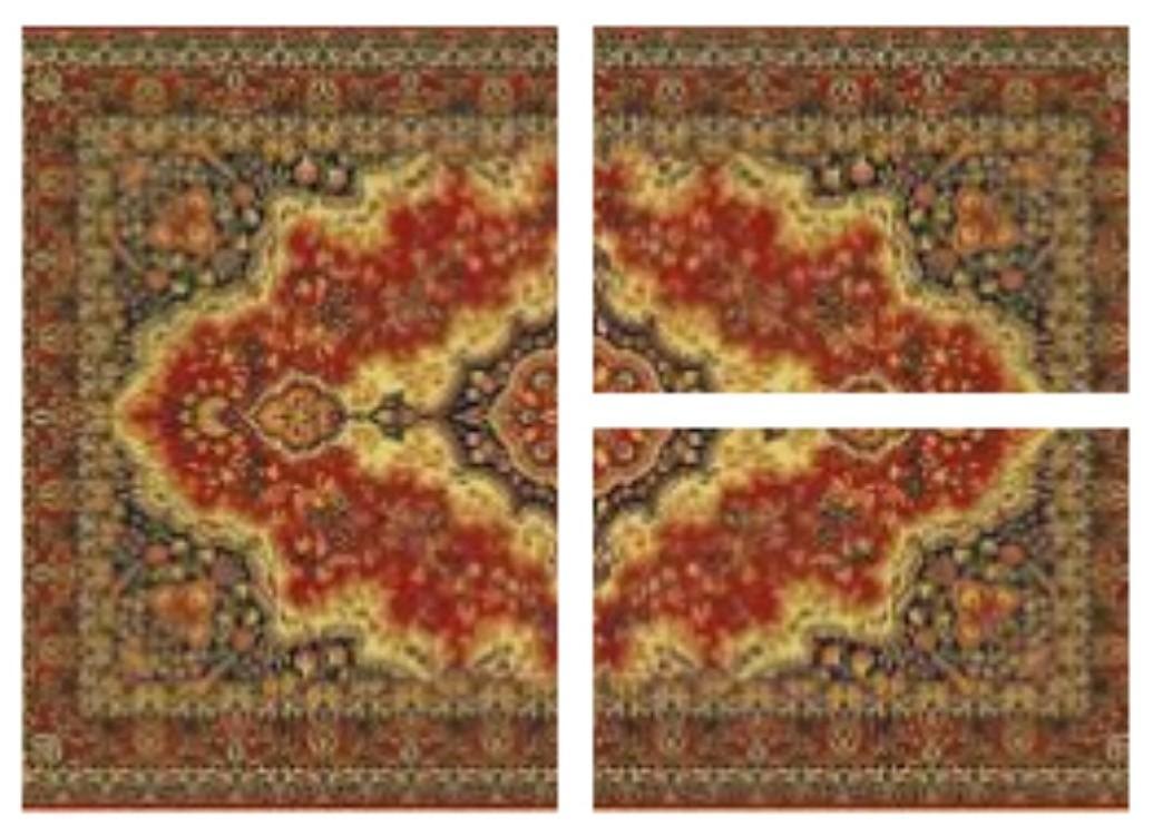 Коврик разделен на 3части, как показано на рисунке. Верно ли, что каждая часть равна 1/3 части всего ковра?