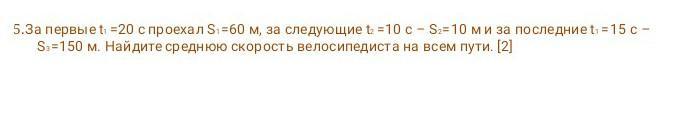 v ср = S/t = (S1+S2+S3)/(t1+t2+t3)=(60+10+150)/(20+10+15)=220/45=4.9(м/c)