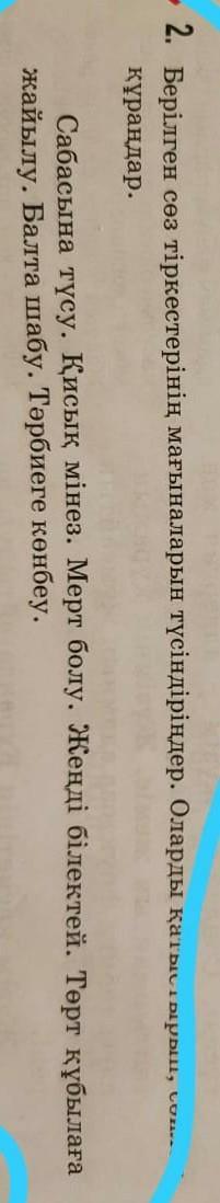Берілген сөз тіркестерінің мағыналарын түсіндіріңдер. Оларды қатыстырып, сөйлем құраңдар. Комектесиниздерши плиз/