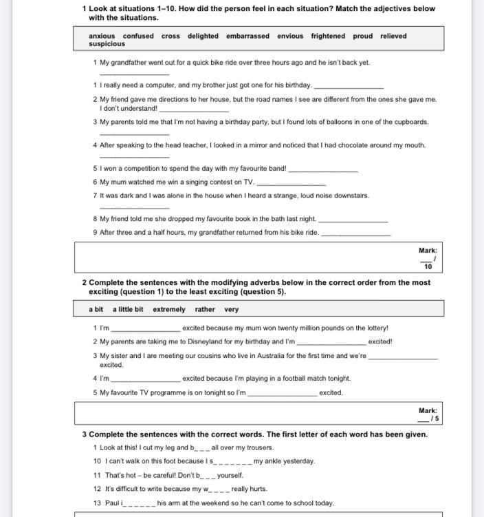 Помогите пожалуйста. Look at situations 1–10. How did the person feel in each situation? Match the adjectives below with the situations.