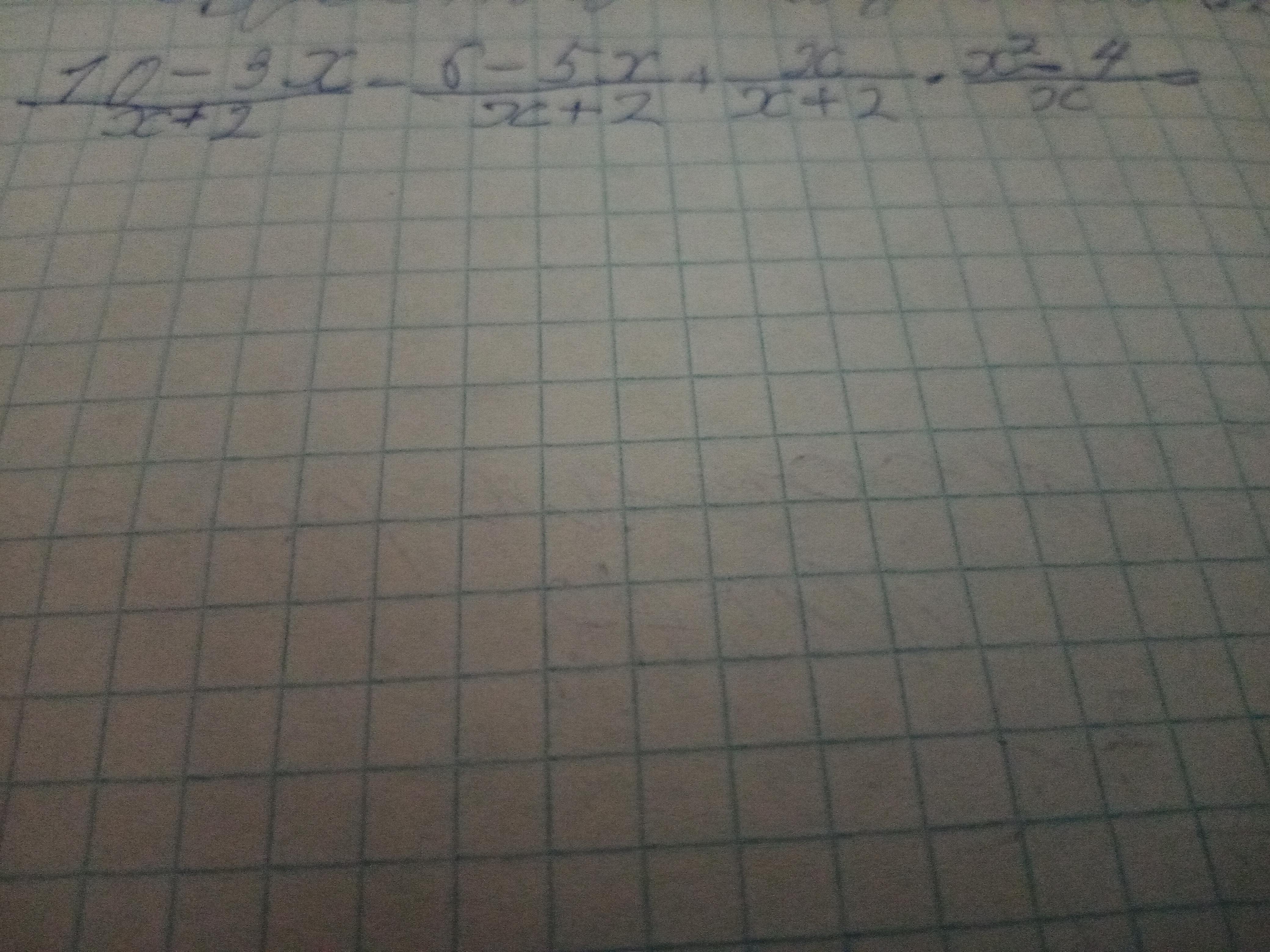 (10-3x/x+2)-(6-5x/x+2)+x-2=10-3x-6+5x+x^2+2x-2x-4/x+2=0+2x+x^2/x+2=x(2+x)/x+2=x