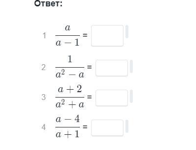 4)множим числитель и знаменатель на а(а-1).Получаем: (а-4)а(а-1)/а(а-1)(а+1)=а(а^2-5a+4)/(a^3-a)=a^3-5a^2+4a/(a^3-a)
