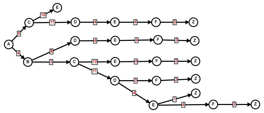 Строим дерево - картинка 2 (ветви, которые очевидно не достигают 6 пунктов не строим)