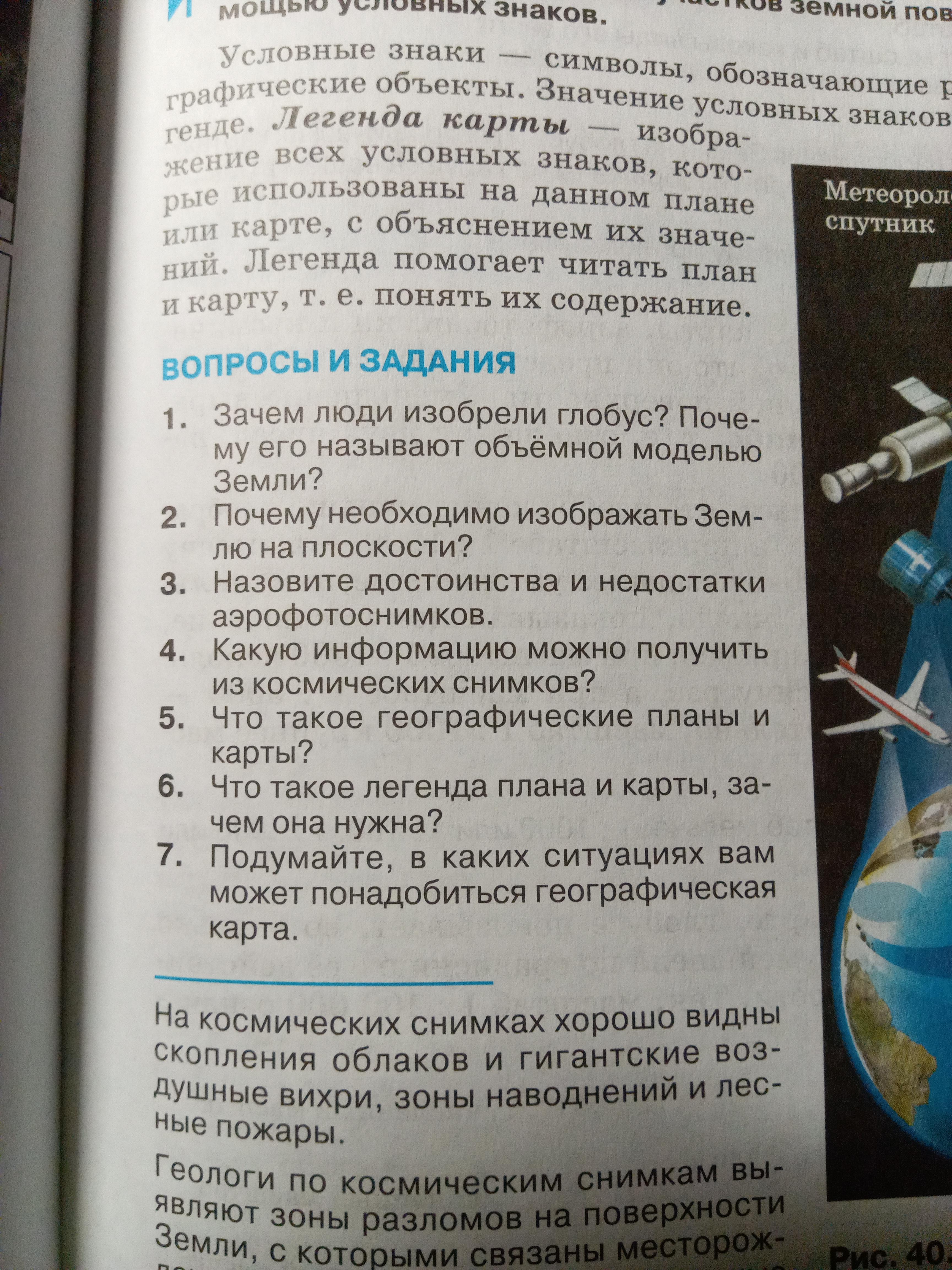 2. Почему необходимо изображать Землю на плоскости? Потому что для получения более подробного изображения земной поверхности глобус должен быть очень большим, а это очень неудобно.Поэтому люди и придумали карты, на которых намного удобнее рассматривать части земной поверхности.