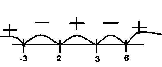 С помощью числовой прямой находим решения: (-∞;-3)∪(2;3)∪(6;+∞)
