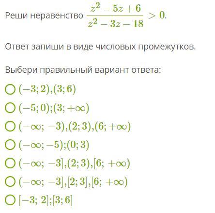 Реши неравенство z2−5z+6z2−3z−18>0 .