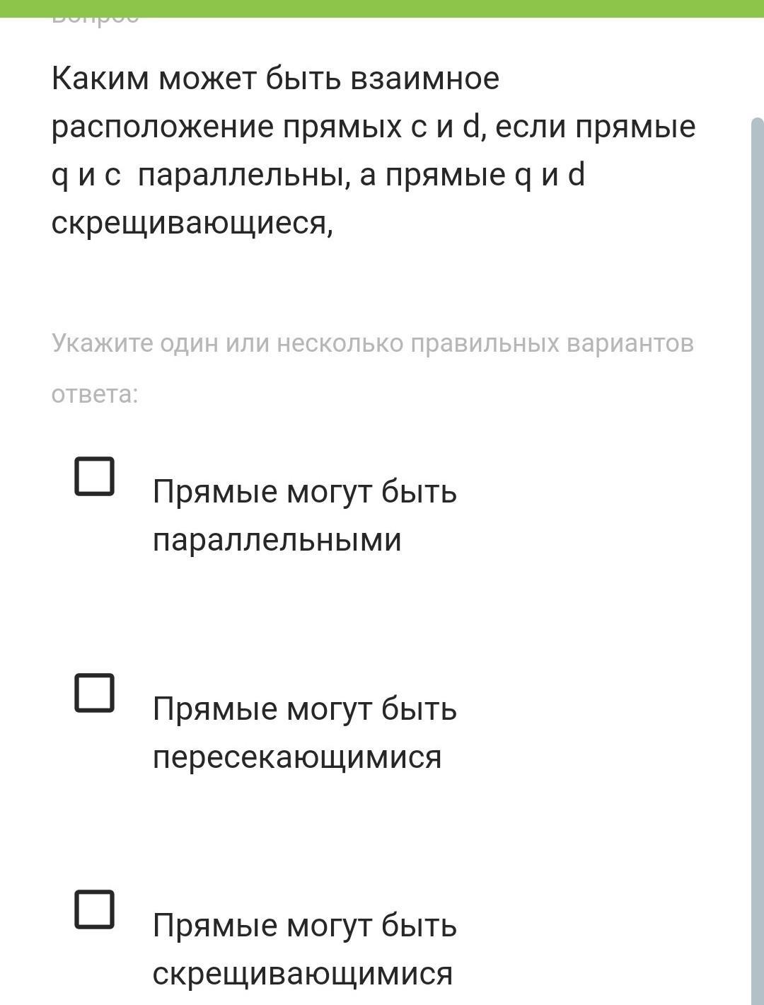 Прямые q и d скрещивающиеся, то есть лежат а разных плоскостях и не имеют общих точек.