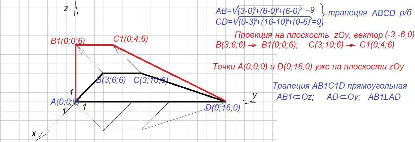 Проецируем трапецию ABCD на плоскость zOy по направлению вектора .
