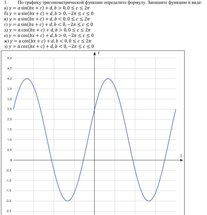 ответ 7) у=3*cos(-x/2+pi/3)+1