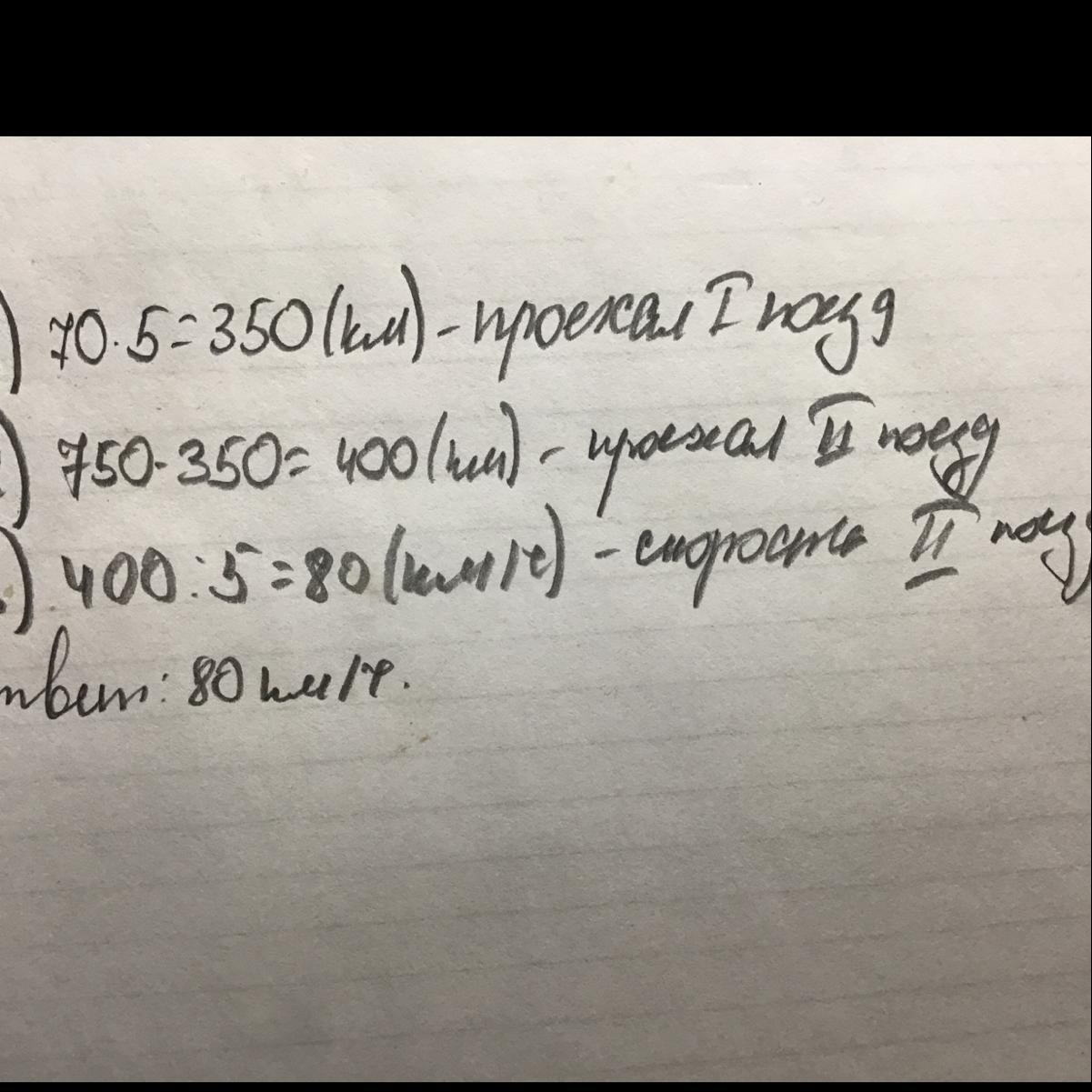 два поезда вышли одновременно навстречу друг другу из двух городов, расстояние между которыми 750 км, и встретились через 5 часов. скорость одного поезда 70км/ч.найди скорость другого поезда