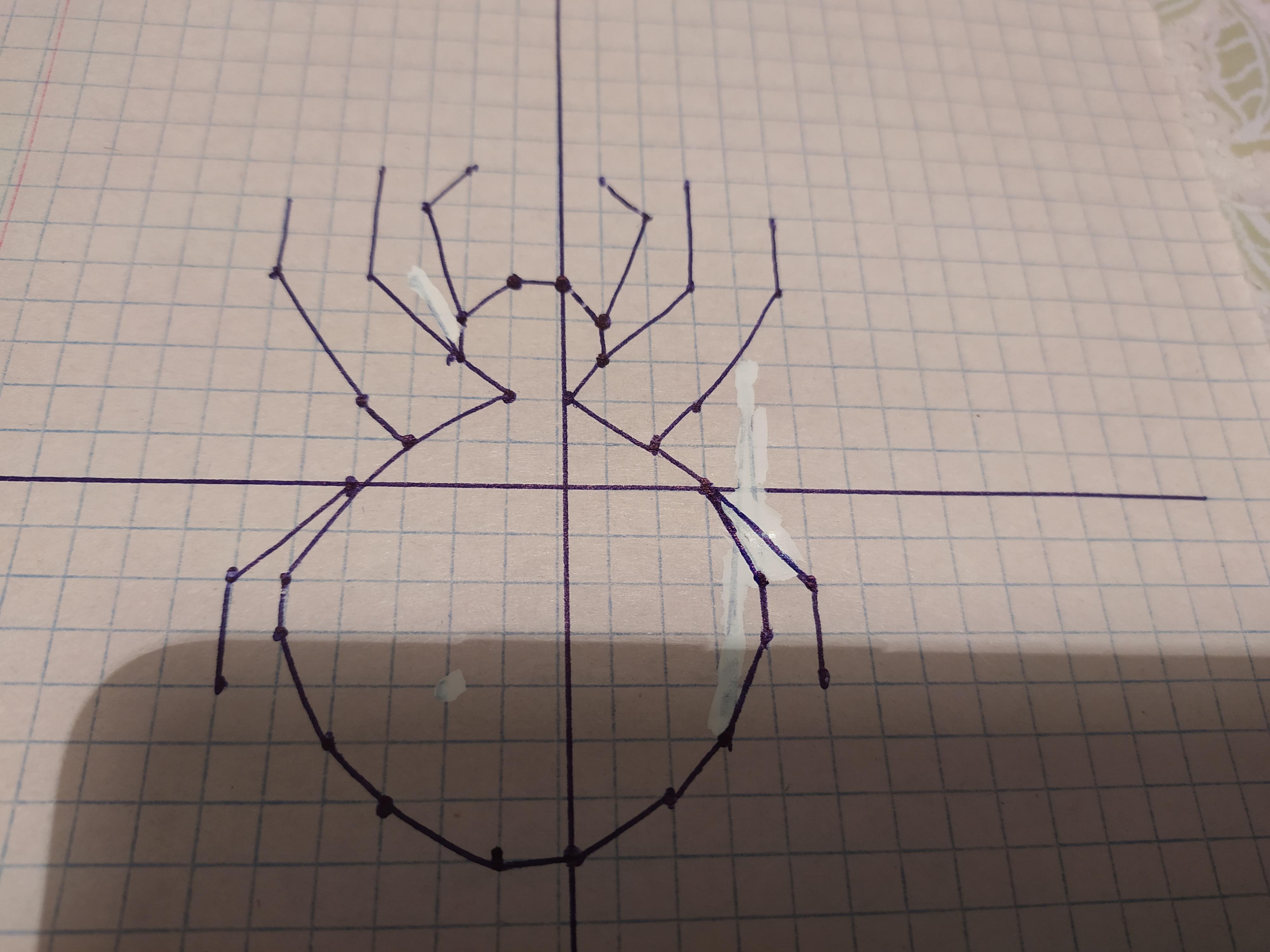 Тело: (-1; -7), (-3; -6), (-4; -5), (-5; -3), (-5; -2), (-4; 0),