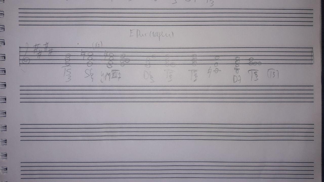 Построить в E-dur гармонической: Т 5/3, S6/4, S 6/4r, УМ77, D 6/5, T 5/3, S6, D7 - T. пожалуйста,помогите!!