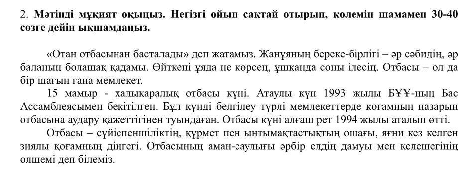 2. Мәтінді мұқият оқыңыз. Негізгі ойын сақтай отырып, көлемін шамамен 30-40 сөзге дейін ықшамдаңыз.